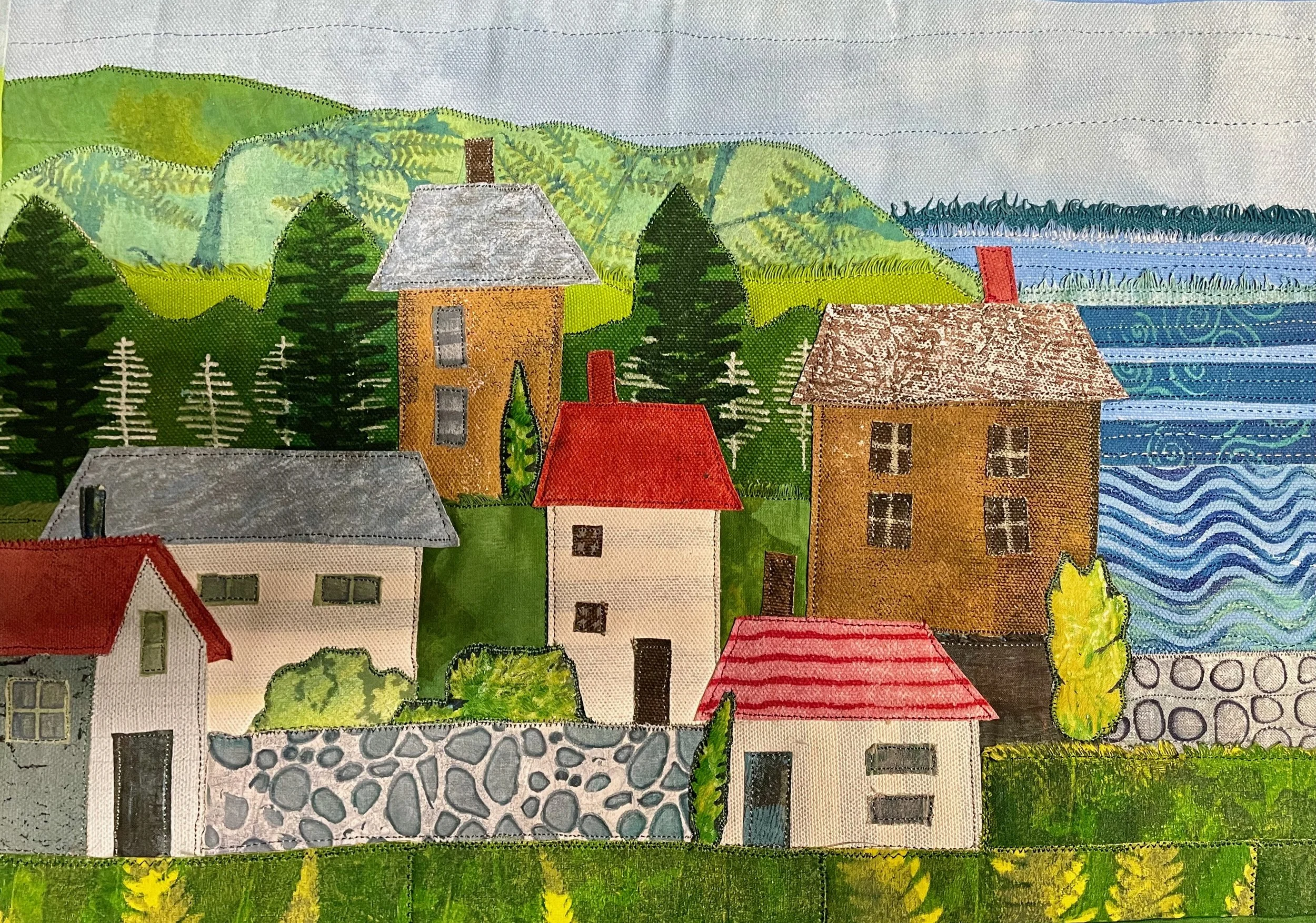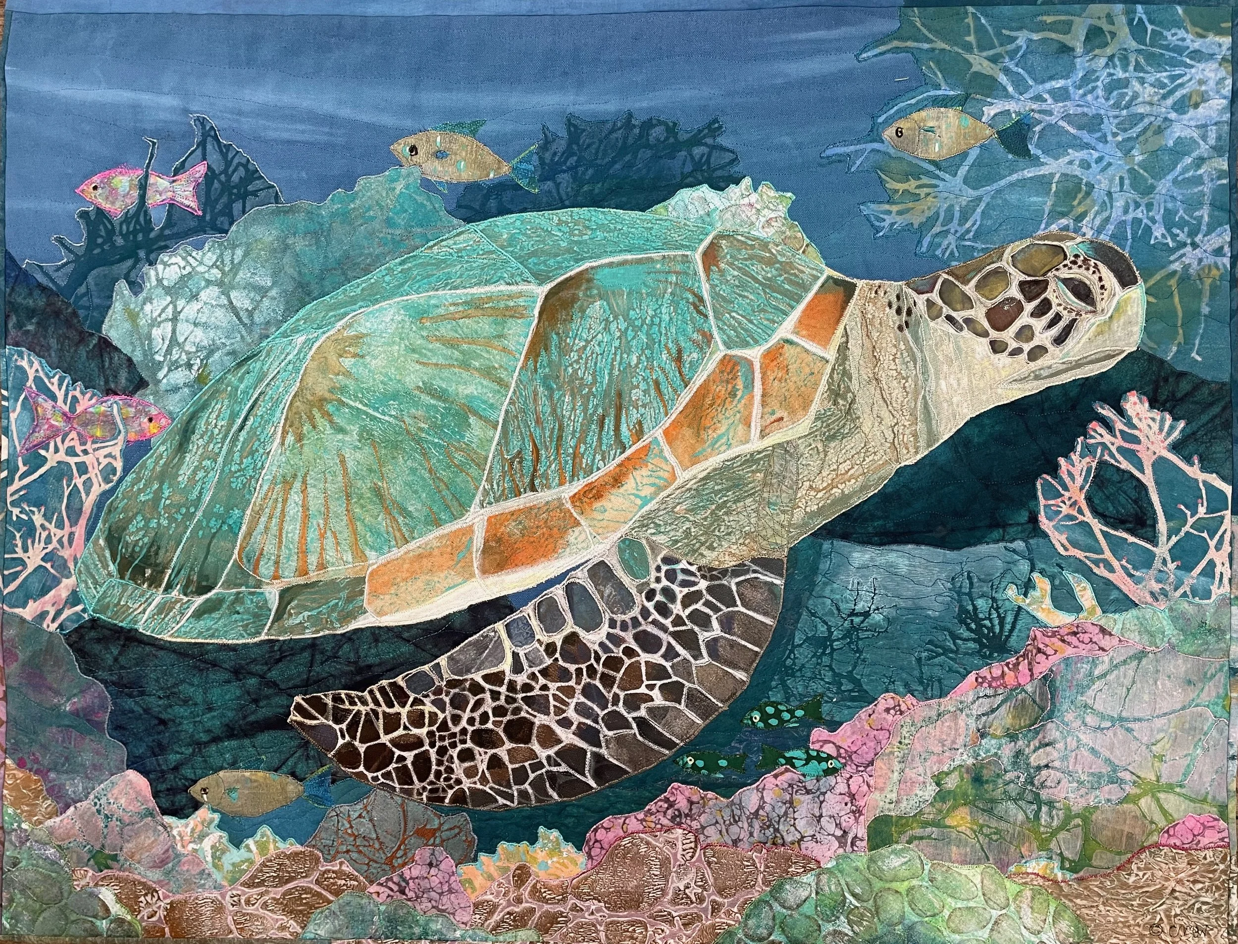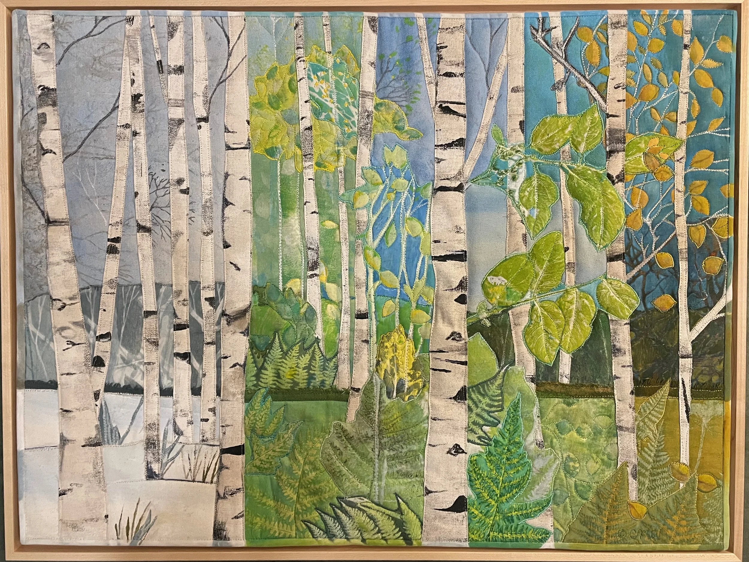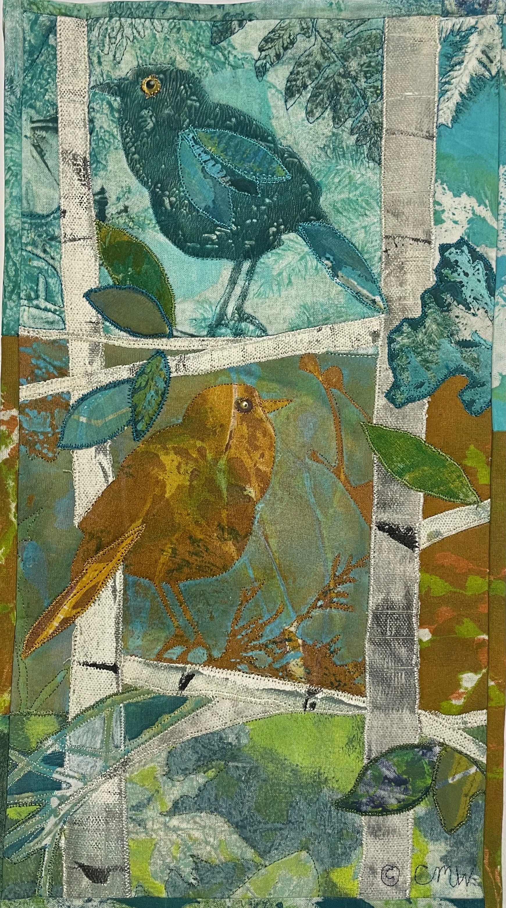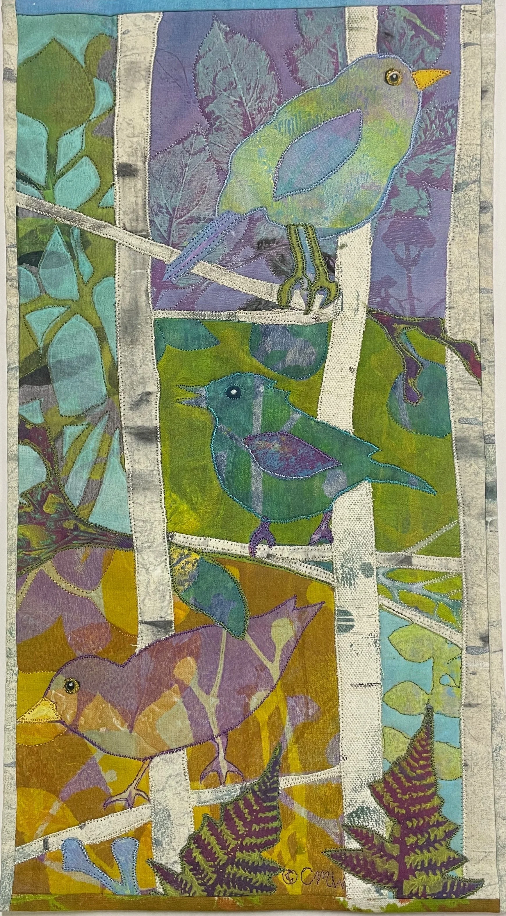 Welcome! I am a mixed media textile artist who designs and makes art for the decoration of homes, offices and public spaces. My textile art represents places and elements inspired by the natural world and made from my process of painting and surface design techniques on cloth, collage piecing and stitching. I invite you to take a look and make an inquiry if you are interested. If you see something you like that has already sold you can always commission me to make a piece that is similar. Thanks for visiting.